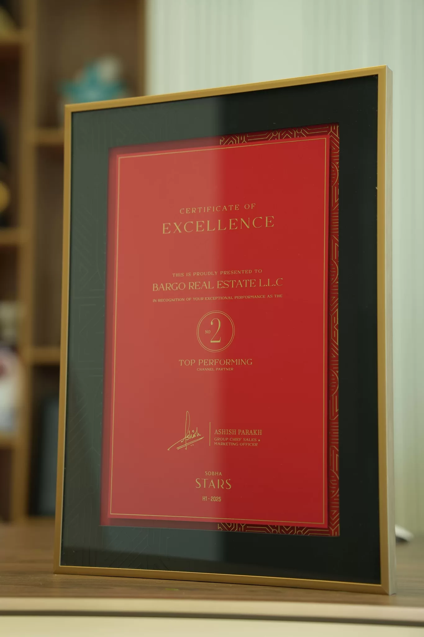 Bargo Real Estate L.L.C. est fière de recevoir le Certificat d'Excellence pour son classement en tant que 2e meilleur partenaire de distribution (1er semestre 2025). Cette prestigieuse distinction de Sobha Realty souligne notre performance constante et notre capacité à dépasser les objectifs de vente sur un marché concurrentiel. Notre engagement envers la transparence et la satisfaction client demeure la pierre angulaire de notre succès. Chez Bargo Real Estate, nous ne nous contentons pas de conclure des transactions ; nous bâtissons des relations durables fondées sur la confiance et des résultats exceptionnels.